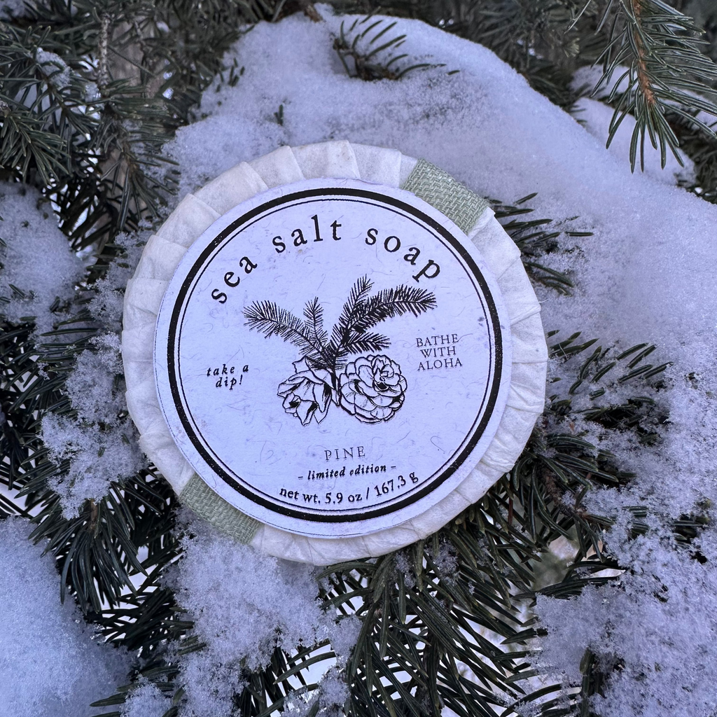 Feel the crispness of a winter morning with this refreshing seasonal bar, available only during the winter months. The blend of pine and cedar creates a cool, camphorous scent that perks up your mornings and settles softly into your evenings. It carries the stillness of a quiet winter day, with a touch of Hawaiian spirulina and indigo to add natural sea minerals and a hint of earthy depth.